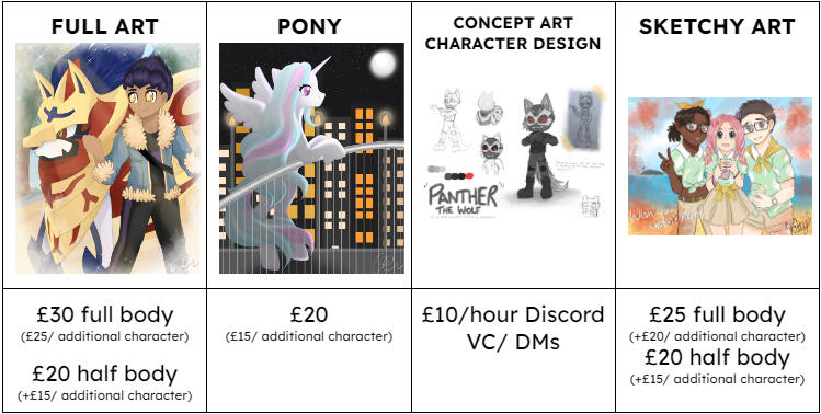 *Youâre more than welcome to ask me about something I could draw that isnât listed here, or enquire about something in general, but understand I have the right to refuse a commission if it would make me uncomfortable while drawing! :)